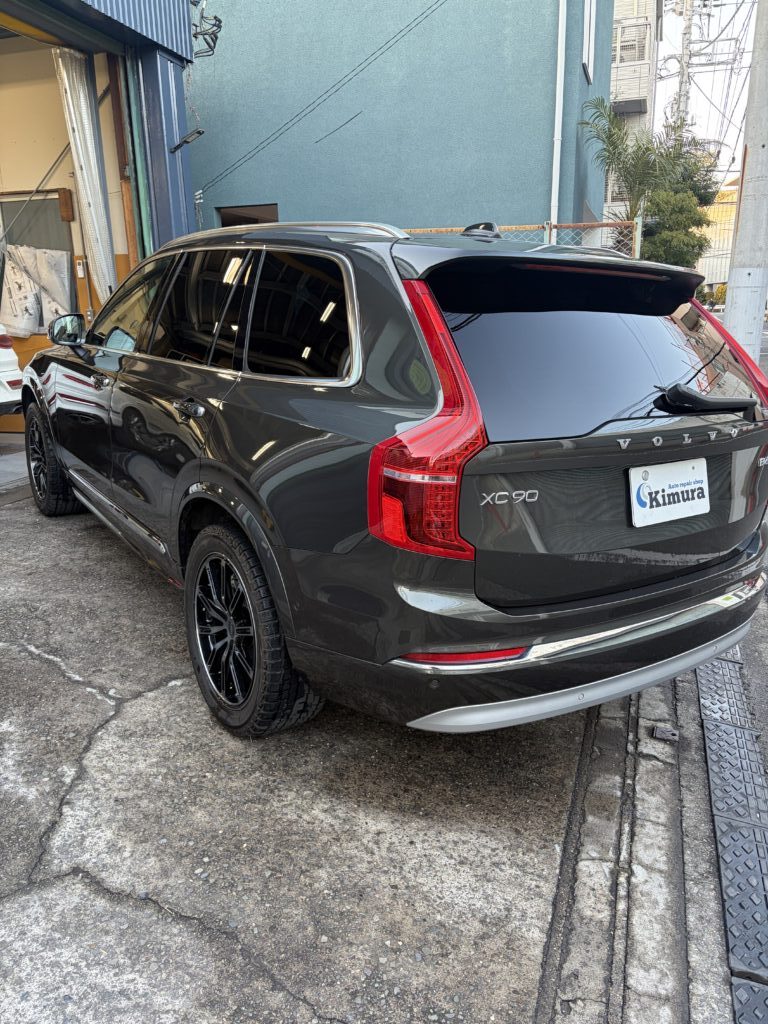 渋谷区のお客様のお車でボルボXC90のキズへこみを鈑金塗装・交換修理させていただきました。