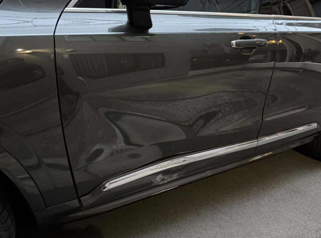 アルミ製ドアパネルで損傷が大きく交換でのご対応となりましたがお客様にも喜んでいただけました!ありがとうございました。