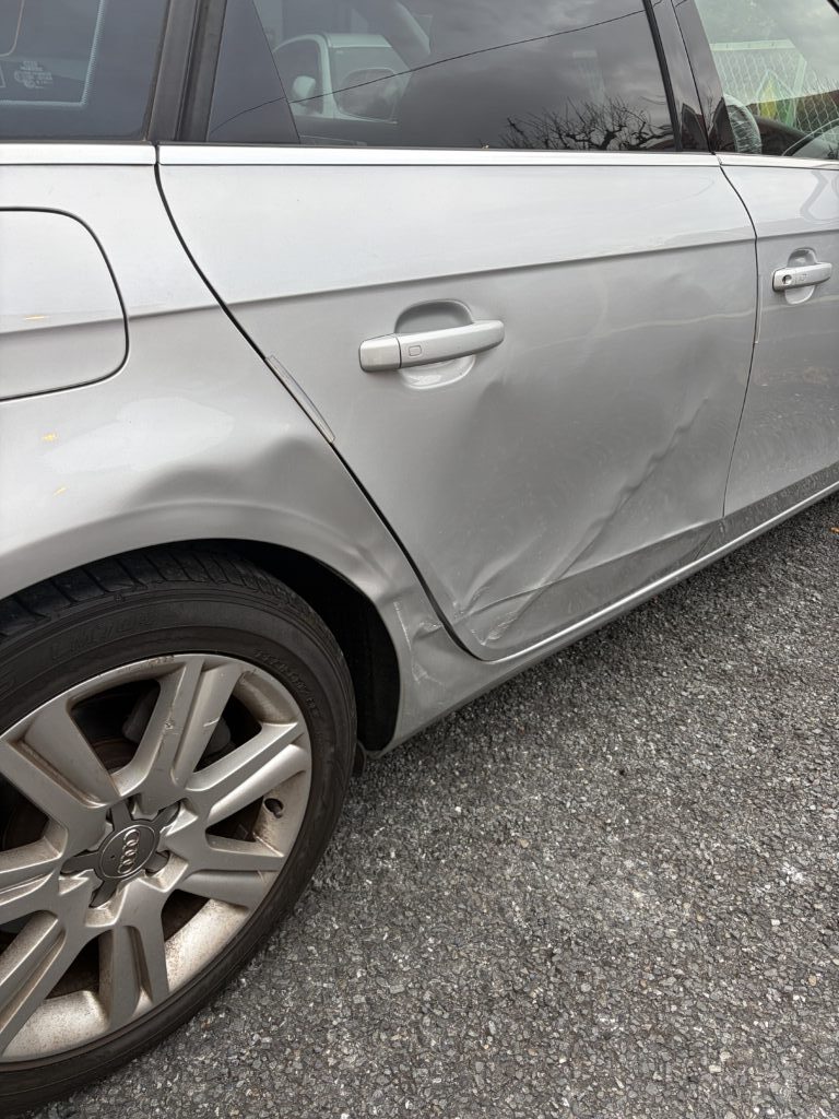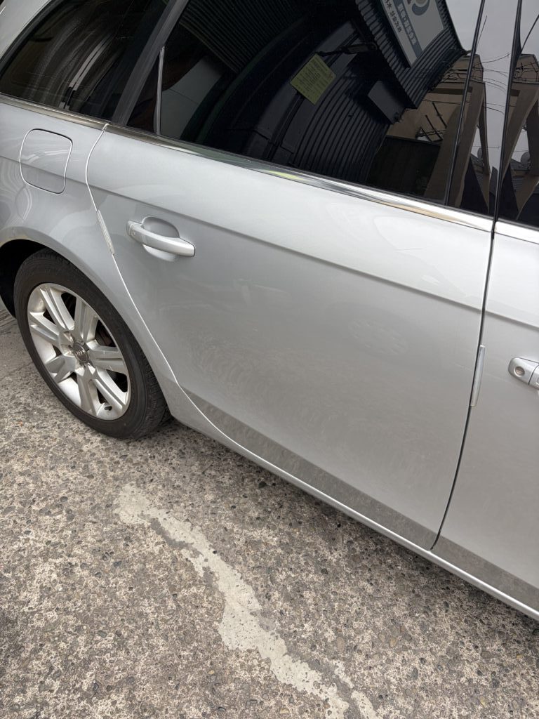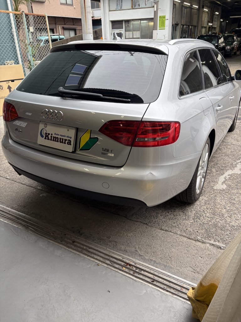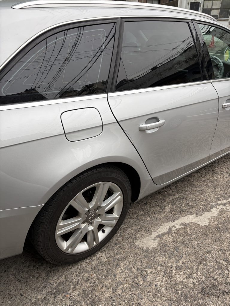大田区のお客様のお車でアウディA4アバントのキズへこみをリサイクルパーツ交換・板金塗装修理させていただきました。