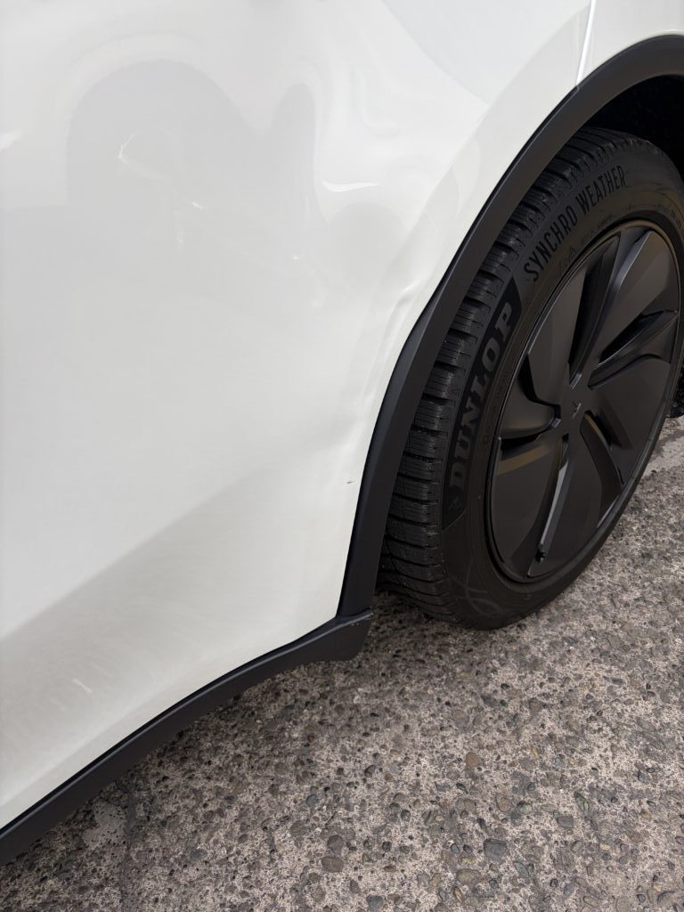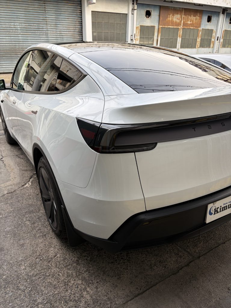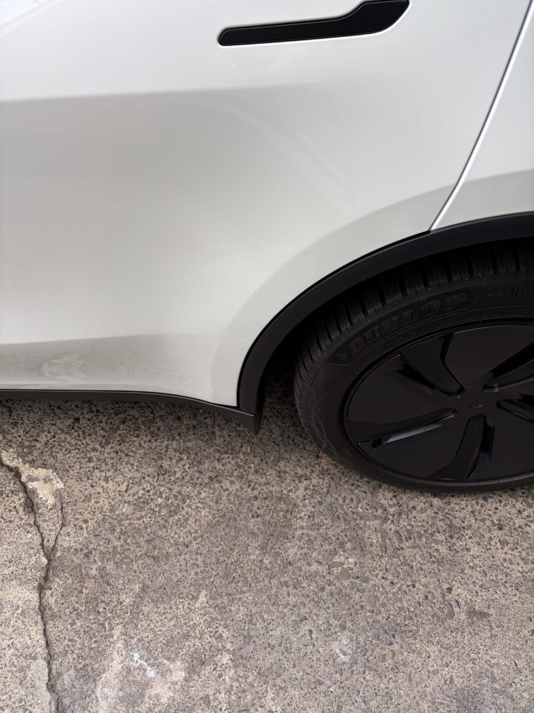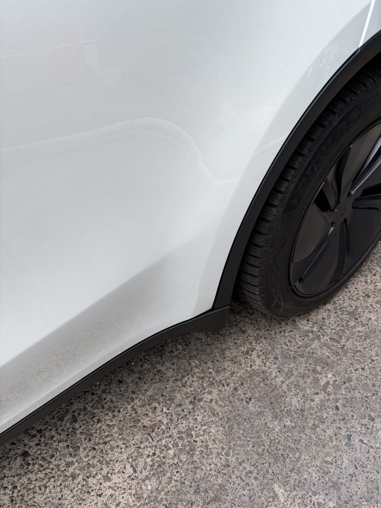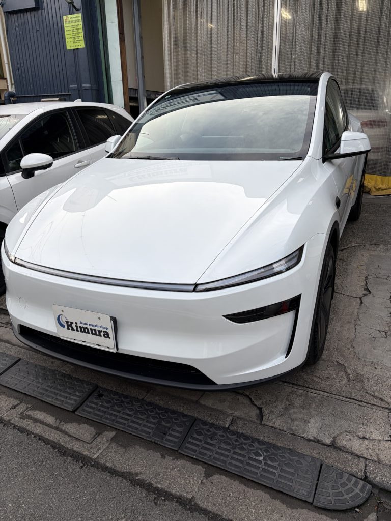 →簡単無料お見積りを試す武蔵野市のお客様のお車でテスラモデルYのアルミ製ドアパネルのキズへこみを板金塗装修理させていただきました。
