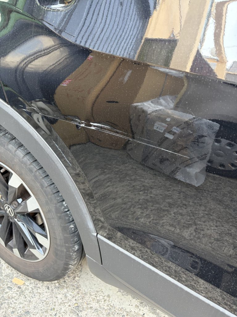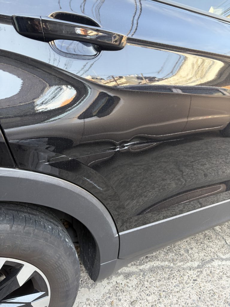 →簡単無料お見積りを試す大田区のお客様のお車でフォルクスワーゲンTクロスのキズへこみを板金塗装修理させていただきました。
